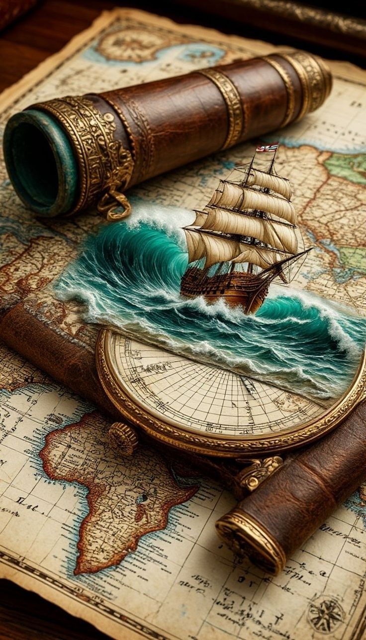 Ovaj dizajn pomjera granice klasične tapete stvarajući fascinantan 3D efekt. Prikazuje staru mapu iz koje bukvalno „izranja“ jedrenjak na tirkiznim talasima, okružen retro teleskopom i navigacionim instrumentima. Nevjerovatan nivo detalja i iluzija prostora čine ovu tapetu centralnim dijelom svakog enterijera koji želi ostaviti snažan utisak na posjetioce.